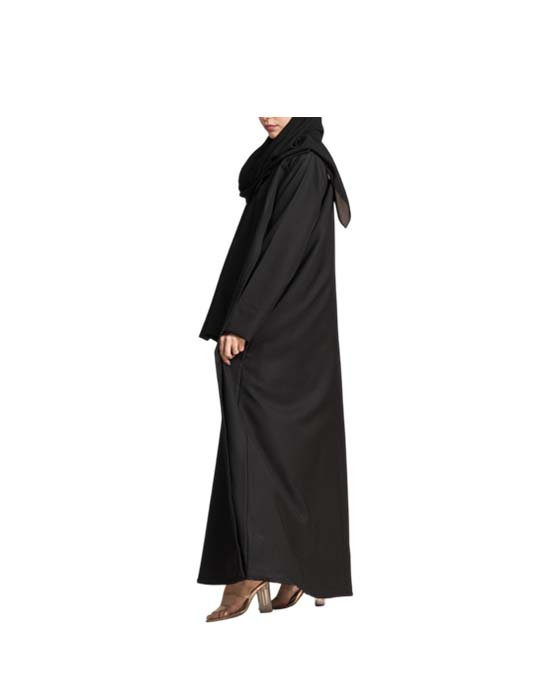 Get a classic look with this black linen half-cloche abaya.