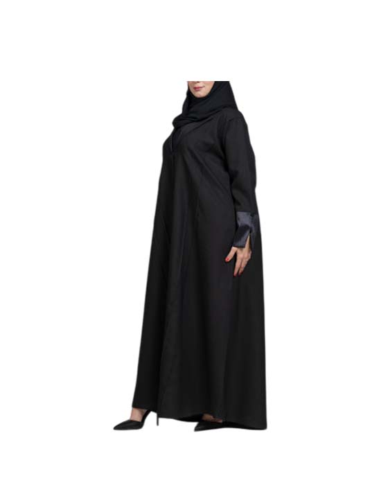Classic Black Linen Abaya With A Distinctive Collar