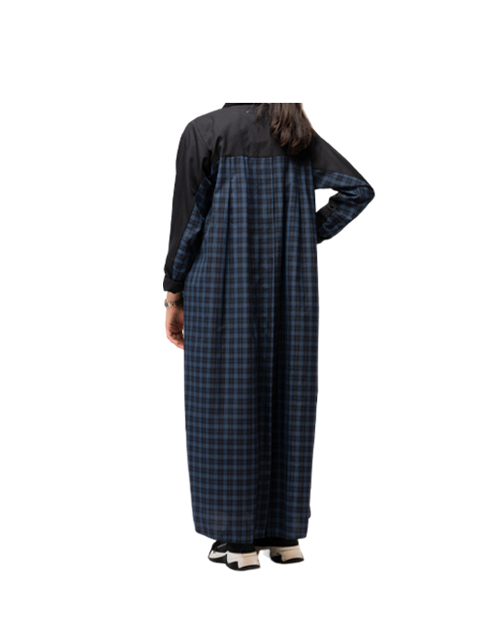 Insertion of checkered fabric on both sides of the abaya at the bottom and back with black and blue checks