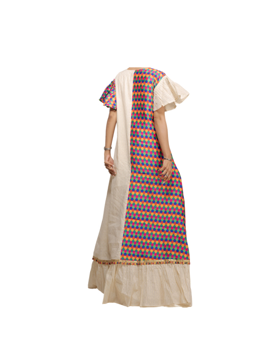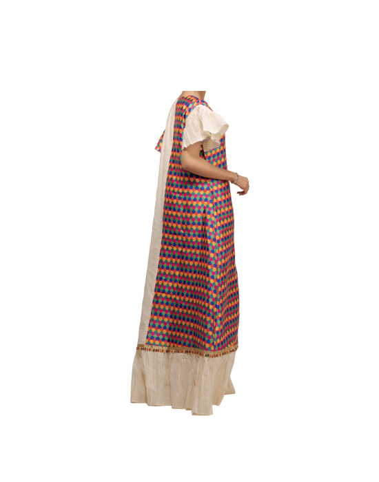 A bright and soft galabiya for children, designed for Gergean atmospheres and occasions. It is characterized by a combination of fabrics of several luxurious materials with a zipper at the bottom and in the sleeves. It is also decorated with perfect rose embroidery, in addition to the bag that accompanies the galabiya.